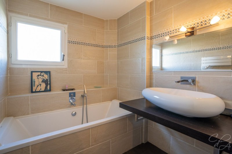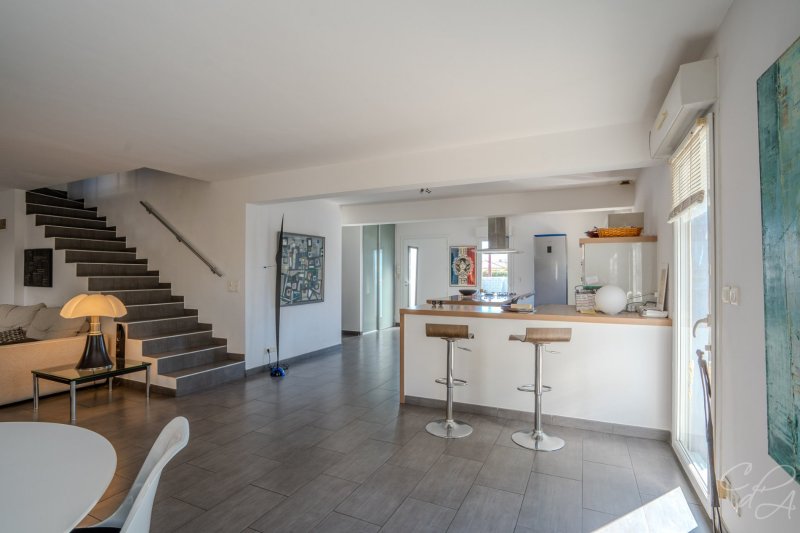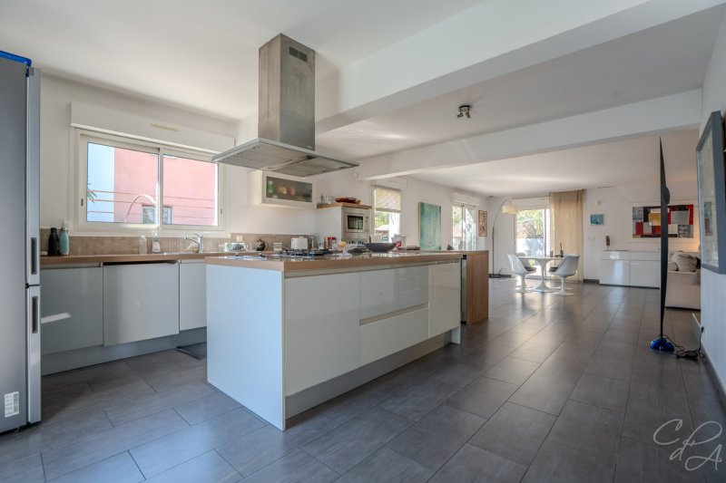Emplacement idéal pour cette villa d'architecte contemporaine située dans un quartier ultra résidentiel, sur la route des plages, à proximité immédiate de toutes les commodités et tout à côté d'un magnifique bois de chênes classé. De type T4, elle possède de très beaux volumes et la pièce de vie comme la suite parentale offrent de formidables proportions, l'ensemble bénéficiant d'une luminosité remarquable. Équipée de prestations de standing, dont une climatisation réversible gainable, pourvue d'un vaste garage et de nombreux rangements, elle ouvre sur un jardin joliment arboré et sur un espace piscine parfaitement aménagé.