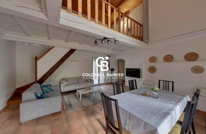 Dès l'entrée, vous serez séduit par une grande pièce de vie lumineuse agrémentée d'une mezzanine, parfaite pour créer un espace bureau ou détente. La cuisine de style méditerranéen, spacieuse et conviviale, s'ouvre sur une cuisine d'été avec barbecue, idéale pour les repas en plein air.