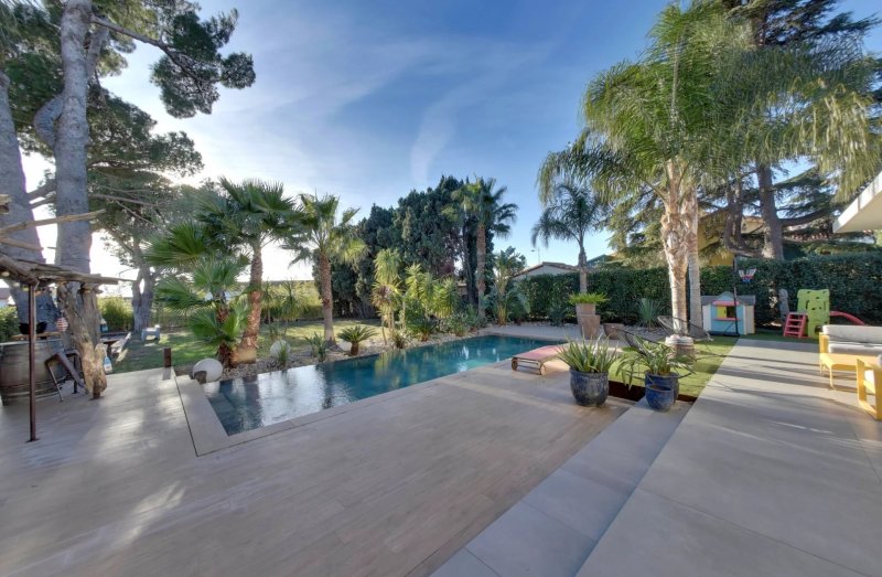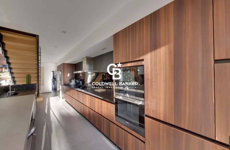 Les extérieurs ont été pensés comme une véritable extension de l’espace de vie : piscine élégamment intégrée, cuisine d’été conviviale, larges terrasses et jardin arboré. Une buanderie et un garage viennent compléter les prestations de ce bien.