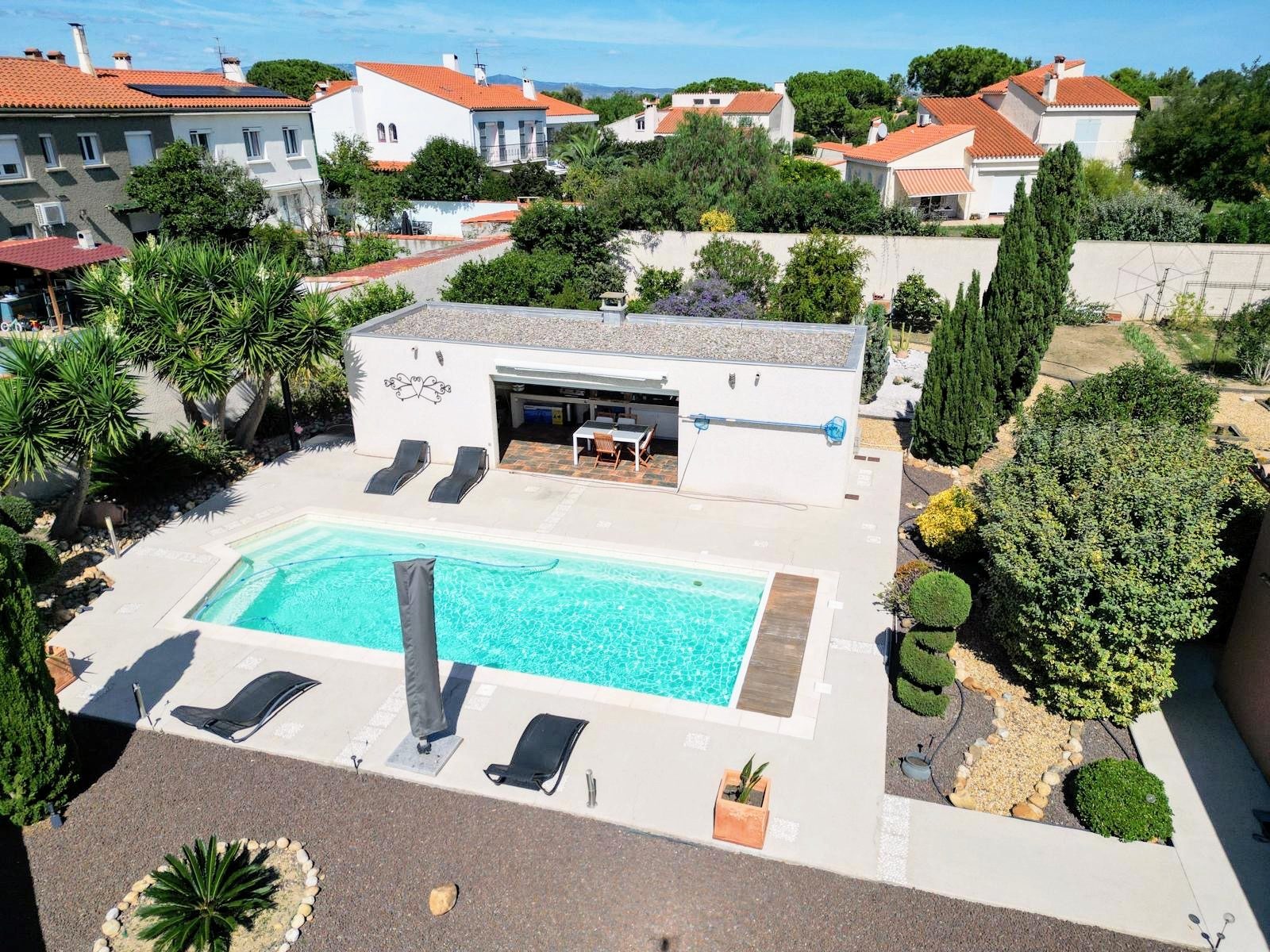 Perpignan, Massilia, Maison 3 faces en R+2, offrant en rez-de-chaussée, une cuisine ouverte, un séjour et un salon, un WC. A u premier étage deux chambres dont une avec baignoire, au deuxième étage deux chambres avec placards une salle d'eau et un WC et au dernier étage une chambre. Ce bien se compose également d'un garage et d'un jardin arboré.