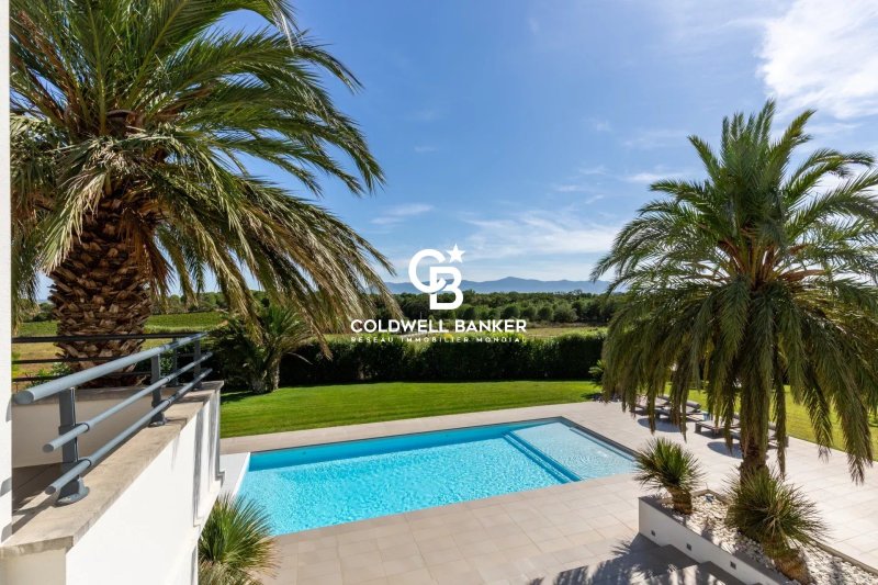 Dans l’un des secteurs les plus prisés de Perpignan, entre ville et Méditerranée, cette demeure contemporaine construite en 2012 s’étend sur un parc arboré de 4 600 m², véritable havre de nature. Son orientation plein sud offre une vue dégagée sur les vignes, dans un cadre à la fois calme et privilégié.