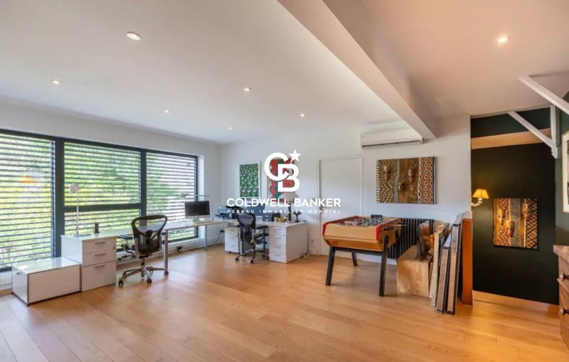 À l’étage, un bel open space de 37 m² offre de nombreuses possibilités d’aménagement (bureau, salle de jeux, espace détente), desservant trois chambres supplémentaires ainsi qu’une salle de douche moderne.