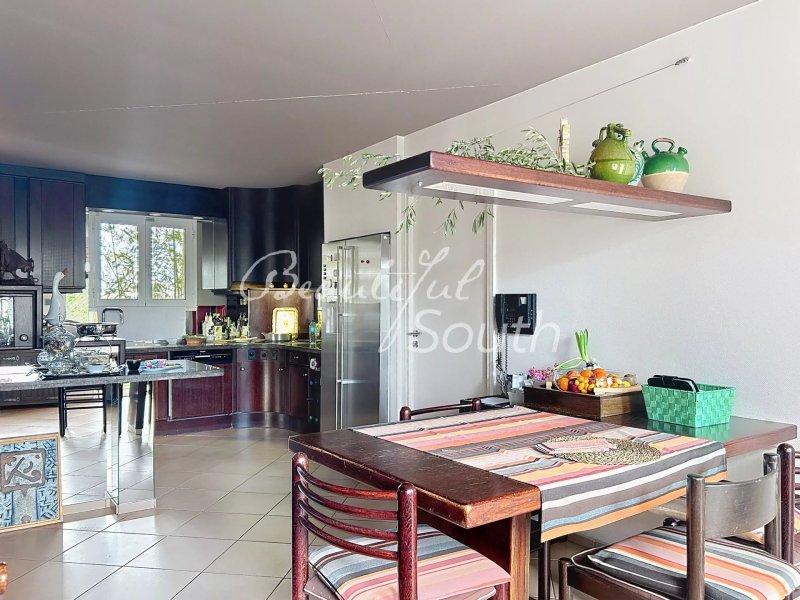 Dès l’entrée, vous apprécierez un espace de vie lumineux grâce à une belle exposition, un foyer à cheminée chaleureux et des prestations haut de gamme. La villa comprend six pièces dont trois grandes chambres offrant une qualité de vie exceptionnelle. Plus un T2 indépendant
