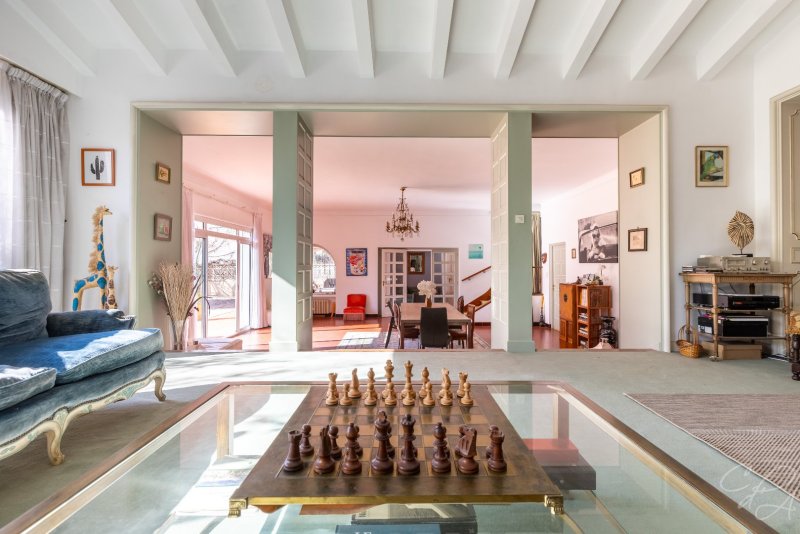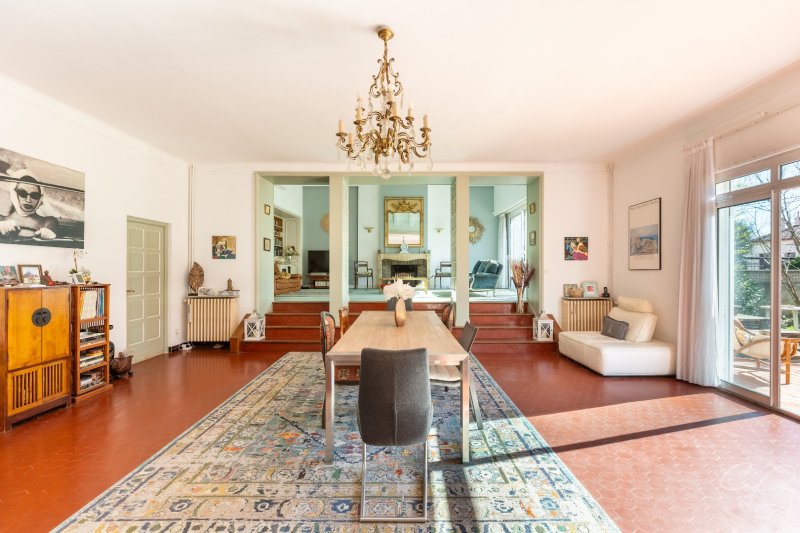 Quatre chambres, dont une en rez-de-chaussée, pour cette élégante maison de ville dessinée par l'architecte Ferid Muchir et bâtie dans les années 60 sur une parcelle de 922 m² joliment arborée et idéalement située à 5 minutes à pied du Palais des Congrès et à 10 minutes de l'hypercentre-ville. Baignée de lumière, pourvue de confortables surfaces annexes dont un garage, une cave et des combles aménageables, cette maison à l'abri des regards est flanquée de terrasses qui sont autant de liens entre le jardin et la magnifique pièce de vie qui totalise à elle seule 83 m². Rarissime.