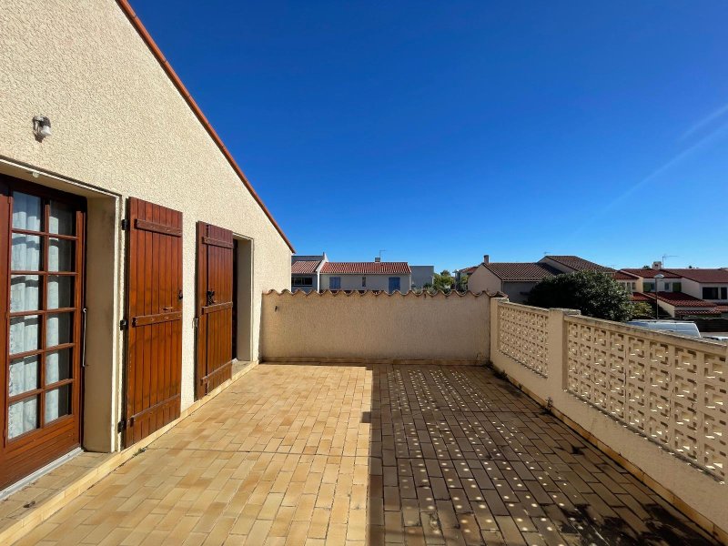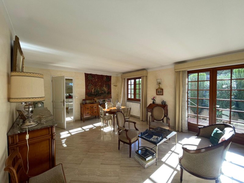 A l'étage, grand palier desservant 3 chambres, grande pièce de 24 m2, salle d'eau, terrasse sans vis-à-vis de 25 m² avec vue sur un petit parc arboré.