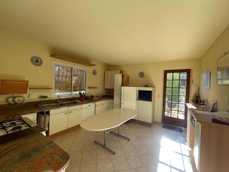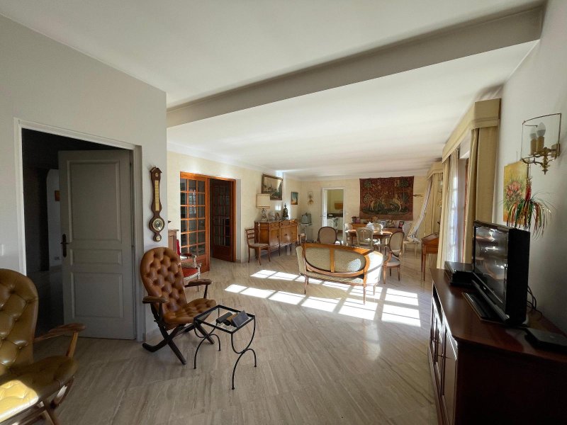 PERPIGNAN MASSILIA, située entre la Route de Canet et le Mas Vermeil, à 5 minutes de Cabestany, dans un quartier calme et apprécié, vous serez séduits par cette grande villa 4 faces traditionnelle de 224 m² environ sur un terrain clos et arborée de 504 m², idéale pour une grande famille ou pour ceux qui recherchent confort, tranquillité, espaces, dans l'un des secteurs les plus recherchés de Perpignan. Elle bénéficie d'une bonne qualité de construction, grands volumes, entrée, chambre avec climatisation, salle d'eau, bureau avec placard, grand salon / séjour climatisé de 40 m² donnant sur une terrasse à l'arrière, cuisine séparée équipée.
