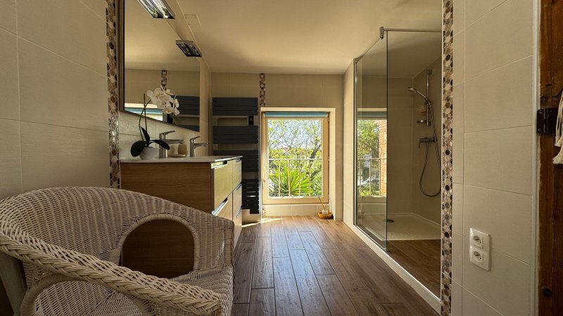 En exclusivité chez TRIBBU, Découvrez ce magnifique mas rénové alliant charme et authenticité, implanté sur un terrain de 1 612 m2, offrant confort, luminosité et de beaux espaces extérieurs. Au premier étage, vous profiterez d'une cuisine ouverte donnant sur un vaste séjour avec cheminée et un accès direct à une terrasse exposée plein sud. Un salon attenant et un WC indépendant complètent ce niveau. Le deuxième étage accueille l'espace nuit avec trois grandes chambres, dont deux équipées de placards et de climatisations réversibles, ainsi qu'une salle de bains avec douche et baignoire et un WC indépendant. Au rez-de-chaussée, un studio aménagé comprend un coin cuisine, un espace nuit séparé, une salle d'eau et un WC, idéal pour accueillir famille ou amis. À l'extérieur, vous pourrez profiter d'une piscine, de trois terrasses spacieuses, d'un barbecue, d'un grand jardin arboré, d'un boulodrome et de plusieurs places de stationnement, le tout sans vis-à-vis. Les menuiseries en double vitrage assurent un confort optimal, et le charme authentique du mas se ressent à chaque détail. En plus de ses qualités de résidence de charme, cette propriété offre un véritable potentiel patrimonial. Sa configuration permet d'envisager une exploitation en location saisonnière, avec des prestations adaptées à une mise en location. Le terrain arboré de 1 612 m2, partiellement constructible, ouvre la voie à des perspectives d'évolution ou de développement, telles que la création d'une seconde habitation ou d'un projet locatif complémentaire (selon réglementation en vigueur). Cette propriété séduira aussi bien les acquéreurs en quête d'un lieu de vie unique que les investisseurs recherchant un bien alliant charme, potentiel de rendement et valorisation à long terme. Venez découvrir ce bien grâce à notre visite virtuelle en 360o disponible sur le site TRIBBU et n'hésitez pas à nous contacter pour plus de renseignements. Vous êtes intéressé ? Notre service de courtage vous accompagne avec une étude gratuite et personnalisée pour trouver la solution de financement idéale. Contactez vite l'agence TRIBBU