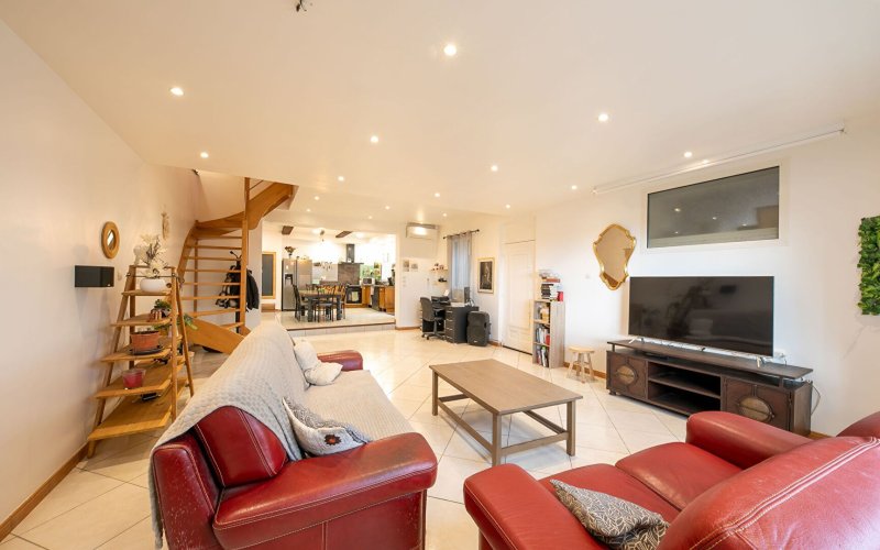 Vous profiterez d'un extérieur, double vitrage, poêle à bois, garage et climatisation réversible.
