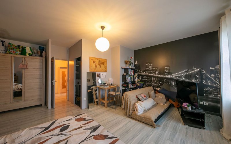 Passez l'entrée et découvrez un vaste séjour lumineux avec cuisine équipée, une première chambre, une salle d'eau et une buanderie.