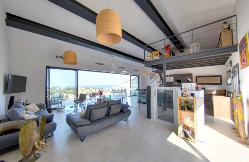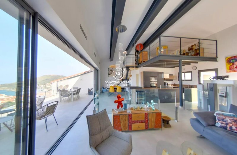 Sur les hauteurs prisées de Port-Vendres, découvrez cette villa contemporaine de 2022 à l’architecture soignée et aux volumes spectaculaires. En configuration deux faces, elle offre une vue dégagée sur la mer et le port, sublimée par une baie vitrée à galandage de 9 mètres de long au deuxième et dernier étage. Cette ouverture prolonge naturellement le grand séjour-cuisine de 65 m² vers l’extérieur, créant une pièce de vie traversante baignée de lumière.