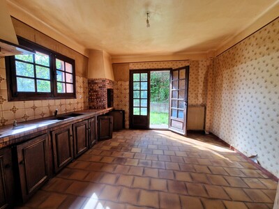 La maison est composée au rdc : entrée, séjour/salon avec accès à la terrasse et jardin, wc, cuisine séparée, cellier donnant accès au garage.