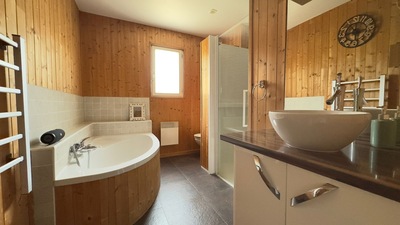 Côté nuit : 4 chambres, un dressing/buanderie, wc séparé et une salle de bain (baignoire + douche avec wc).