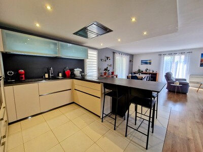 Le bien se décompose avec une entrée donnant directement sur la belle pièce de vie avec la cuisine équipée ouverte sur le séjour/salon avec accès à cette agréable terrasse.