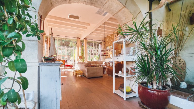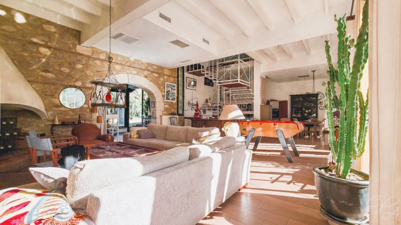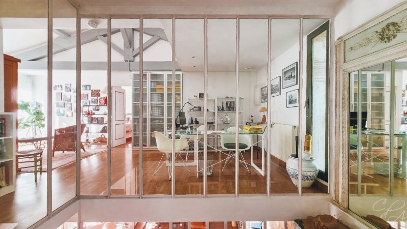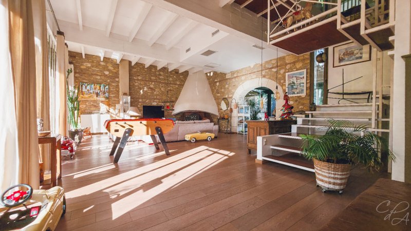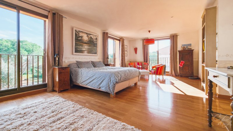 Dans cet authentique corps de mas aux dimensions hors normes, parfaitement situé entre le golf de SAINT-CYPRIEN et le lac de VILLENEUVE, tout nous enthousiasme ; la formidable pièce de vie éclairée par une gigantesque verrière et pourvue d'un escalier central aux lignes similaires soulignant l'impressionnante hauteur sous plafond ; le bureau baigné de lumière aux allures d'open space ; la taille des quatre suites dont deux se trouvent en rez-de-chaussée ; et, bien sûr, les extérieurs savamment aménagés qui s'étirent sur 4 700 m² avec une piscine 12 x 6 que borde une large plage en travertin et l'indispensable cuisine d'été. Notons en passant la qualité des équipements parmi lesquelles la climatisation réversible gainable et saluons la performance des panneaux photovoltaïques qui réduisent fortement le coût de la dépense énergétique et procure, de surcroit, chaque année, un petit rapport. À voir sans tarder et surtout sans modération.