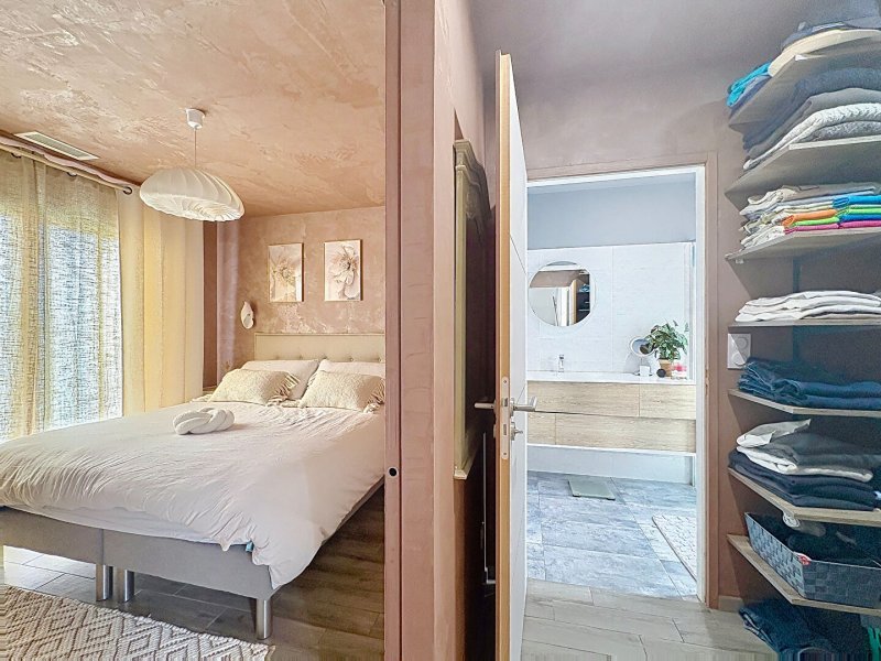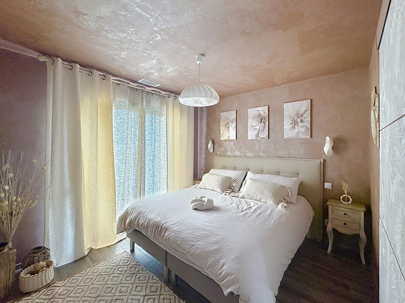 Salses le château, je vous propose cette villa offrant de très belles prestations, surélevée d'un étage de 104 m² habitable de type f4 avec une suite parentale en RDC et un autre coin nuit à l'étage offrant deux belles chambres une salle d'eau équipée et un toilette.