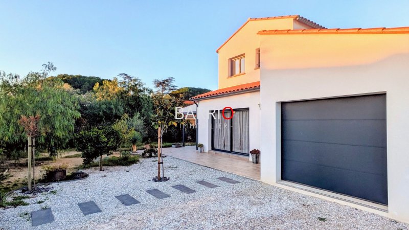 Nichée dans un secteur calme et prisé, cette villa construite en 2020 séduit par son architecture moderne, son confort optimal et surtout ses vues exceptionnelles sur les Albères. Idéale pour profiter pleinement de la douceur de vivre locale. Au rez-de-chaussée, vous découvrirez une vaste pièce à vivre lumineuse, regroupant salon, cuisine ouverte et salle à manger, parfaite pour des moments conviviaux en famille ou entre amis. Une suite parentale avec salle d'eau et un WC indépendant complètent ce niveau, alliant confort et praticité. À l'étage, deux chambres supplémentaires et une salle d'eau offrent un espace nuit fonctionnel et agréable. À l'extérieur, la villa dispose d'une terrasse avec pergola bioclimatique, idéale pour profiter des journées ensoleillées et admirer le paysage, d'un garage ainsi que d'un espace pour stationner plusieurs véhicules. Le terrain, d'environ 420 m², est piscinable pour créer un véritable coin détente. Cette maison récente allie modernité, tranquillité et cadre privilégié, avec des vues panoramiques sur les Albères. Un bien rare à découvrir rapidement ! Honoraires inclus de 5% TTC à la charge de l'acquéreur. Prix hors honoraires 380 000 . DPE en cours. Les informations sur les risques auxquels ce bien est exposé sont disponibles sur le site Géorisques : georisques.gouv.fr.