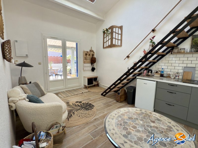 À VENDRE Coup de coeur ! Dans le secteur recherché des Capellans à Saint-Cyprien Plage, au sein d'une résidence sécurisée avec piscine, découvrez ce pavillon T3 de 45 m² avec Garage de 15m2 attenant, entièrement rénové avec goût et des prestations de qualité, idéal pour y vivre à l'année ou en secondaire. Le pavillon offre : - Séjour lumineux de 17 m² avec belle hauteur sous plafond et grande cuisine entièrement équipée. - Salle d'eau contemporaine avec douche - WC séparé - Chambre en rez-de-chaussée avec placard - Grande mezzanine de 17 m² à l'étage (espace nuit et salon/bureau) Extérieurs traversants : - Terrasse Est pratique pour étendre le linge - Terrasse Ouest avec store-banne et auvent, coin détente/repas abrité Climatisation réversible, Velux électriques, stores électriques, carrelage au sol, électricité aux normes aucun travaux à prévoir. Annexes : - Garage attenant de 15 m² inclus - Place de parking extérieure privative dans la résidence Un bien clé en main, rare sur le secteur : idéal résidence principale, secondaire ou investissement locatif qualitatif. Contact direct : Nathan Agence du Soleil Saint-Cyprien 06 82 25 56 58 vente.nathan@agencedusoleil.com Honoraires à la charge du vendeur. Dans une copropriété de 300 lots. Quote-part moyenne du budget prévisionnel 1 100 /an. Aucune procédure n'est en cours. Classe énergie D, Classe climat B Montant estimé des dépenses annuelles d'énergie pour un usage standard : entre 742.00 et 1004.00 sur les années 2021, 2022 et 2023 (abonnements compris). Les informations sur les risques auxquels ce bien est exposé sont disponibles sur le site Géorisques : georisques.gouv.fr. . Retrouvez tous nos biens sur www.agencedusoleil.com