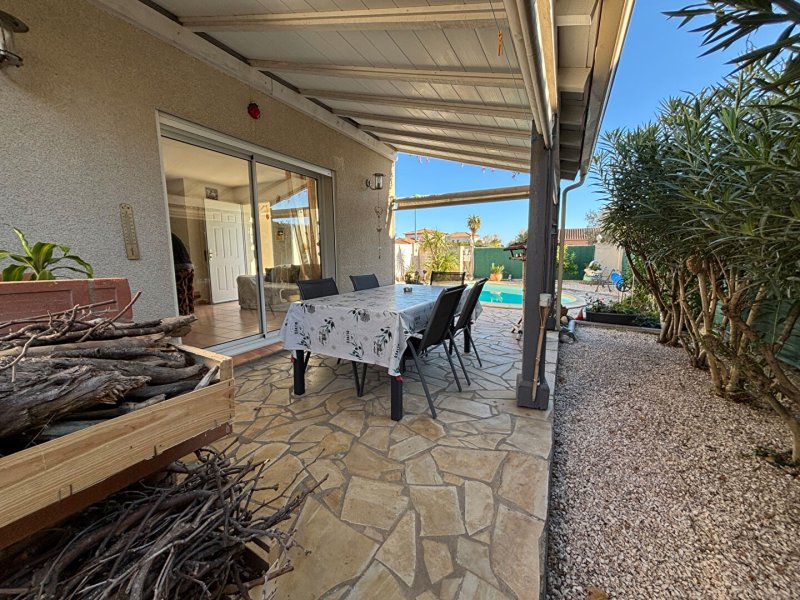 Pergola aménagée, parfaite pour une cuisine d'été ou un espace détente.