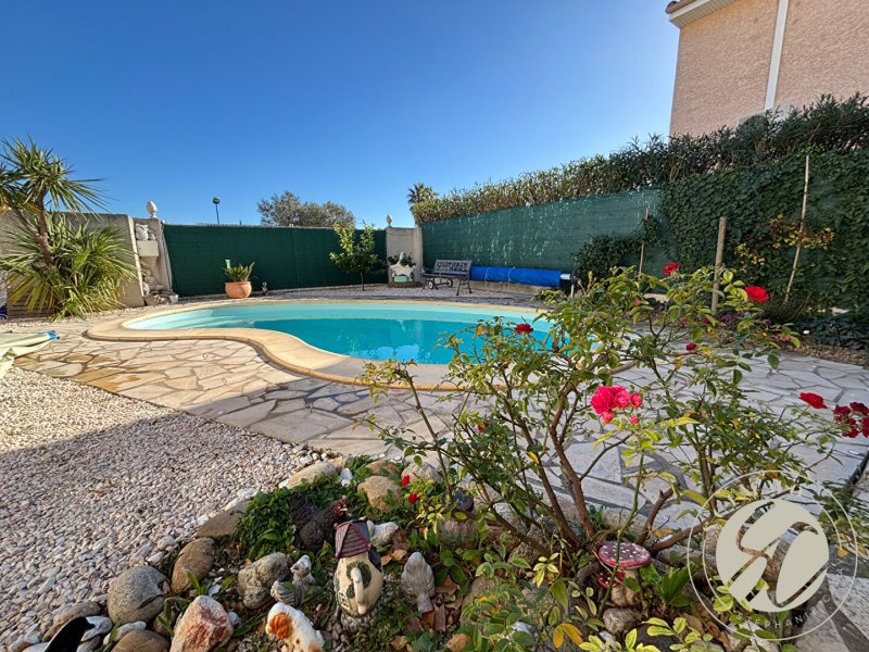 Piscine sans vis à vis, jardin clos et arboré. Garage et stationnement privé.