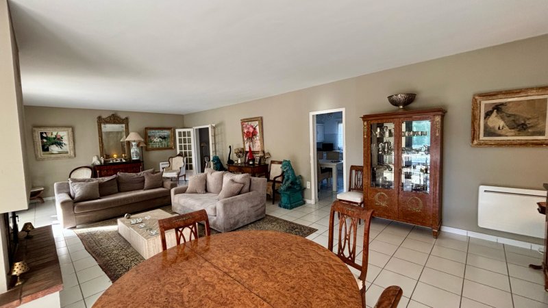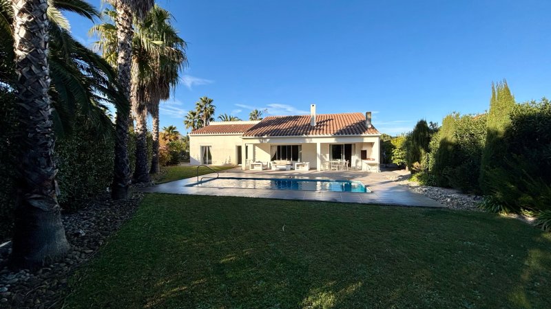 Superbe villa 4 faces de plain-pied, située dans un environnement privilégié, au calme absolu et sans aucun vis-à-vis. Elle se compose d'un grand séjour baigné de soleil, ouvrant sur une large terrasse exposée plein sud et une magnifique piscine maçonnée, entourée d'un jardin arboré. La maison offre 3 belles chambres, 2 salles d'eau, ainsi qu'une grande cuisine équipée accompagnée de son arrière-cuisine. Un garage et des combles complètent l'ensemble. Implantée sur un terrain de 1 100 m2, elle permet de stationner plusieurs véhicules et bénéficie d'un forage. Un bien de qualité, rare sur le secteur. À visiter sans tarder. « Les informations sur les risques auxquels ce bien est exposé sont disponibles sur le site Géorisques : www.georisques.gouv.fr »