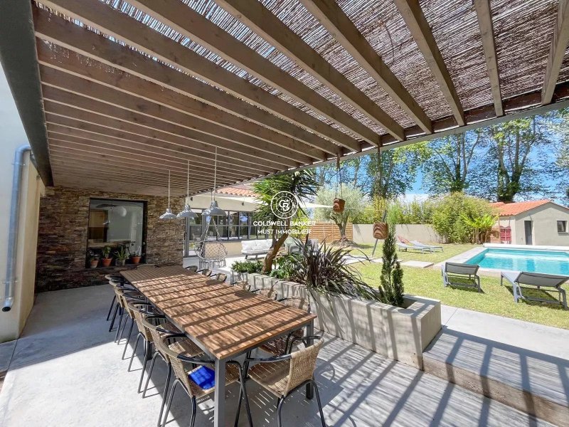 L’extérieur est tout aussi séduisant et parfaitement aménagé pour profiter pleinement des beaux jours : une superbe cuisine d’été avec espace réceptif s’ouvre sur la piscine et sa plage de bains. Un garage ainsi qu’une grande allée...