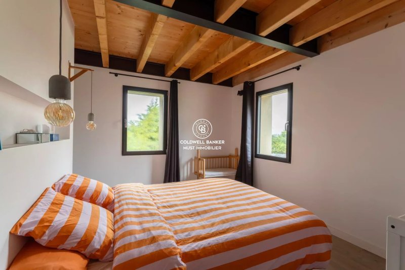 Au rez-de-chaussée, vous découvrirez une magnifique pièce de vie baignée de lumière, agrémentée d’une verrière offrant une vue agréable sur la piscine et le jardin. Cet espace se compose de trois zones harmonieusement réparties : une cuisine, une salle à manger et un séjour. Un toilette indépendant ainsi qu’un espace buanderie complètent ce niveau.