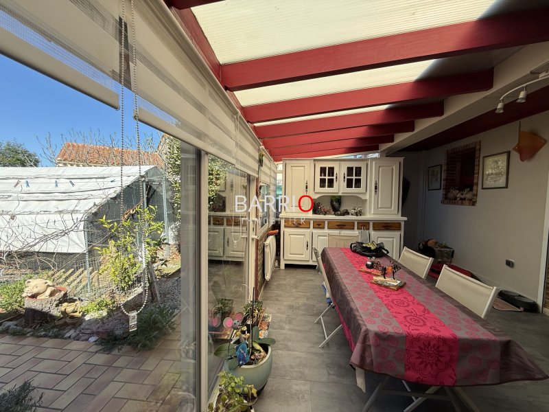 Maison mitoyenne d'un côté d'environ 97 m², située dans un secteur agréable. Séjour lumineux avec véranda exposée sud-ouest, cuisine séparée équipée. Trois chambres dont une en RDC, deux salles d'eau et deux WC. Maison bien entretenue avec climatisation, panneaux solaires et ballon thermodynamique. Jardin, terrasse, cuisine d'été, cave et stationnement complètent le bien. Honoraires inclus de 3.75% TTC à la charge de l'acquéreur. Prix hors honoraires 320 000 . Dans une copropriété de 50 lots. Quote-part moyenne du budget prévisionnel 936 /an. Aucune procédure n'est en cours. Classe énergie C, Classe climat A Montant estimé des dépenses annuelles d'énergie pour un usage standard : entre 950.00 et 1286.00 sur les années 2021, 2022 et 2023 (abonnements compris). Les informations sur les risques auxquels ce bien est exposé sont disponibles sur le site Géorisques : georisques.gouv.fr.