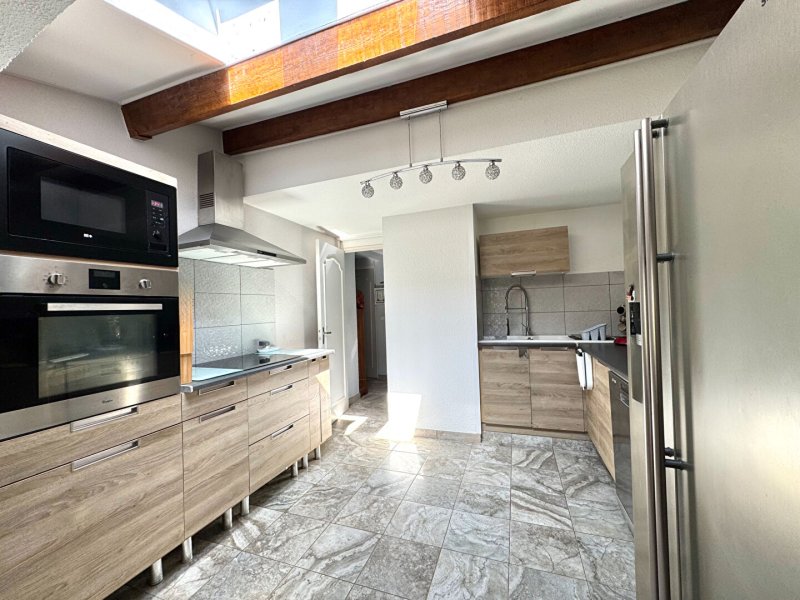 A vendre, résidence les Aigues Marines à Saint-Cyprien Plage : maison en R+1 avec au rez-de-chaussée, une cuisine ouverte équipée, un séjour , une chambre ,une salle d'eau et un WC . Dans le prolongement du salon, une véranda de 14m2 . L'ensemble donne sur un beau jardin clos d'environ 300m2 avec ses plantes, arbustes...et sa pergola dotée d'une cuisine d'été.