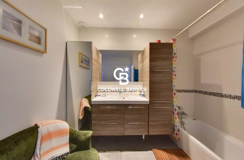 La plage se trouve juste en face, accessible en quelques pas — un privilège rare et discret. La propriété bénéficie en outre d’un garage.