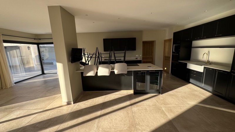 BAHO, à proximité de SAINT-ESTEVE, villa d'architecte haut de gamme F5 de 166 m² H avec terrasse, pool house et garage le tout édifié sur parcelle 4 faces avec piscine BALI . Espace séjour / SAM / cusine de 72 m², 3 suites avec SDE et dressing dont 1 avec terrasse et vue sur le canigou, bureau, buanderie......Construction de 2022 avec finitions et prestations de standing. A proximité du village et de la nature.