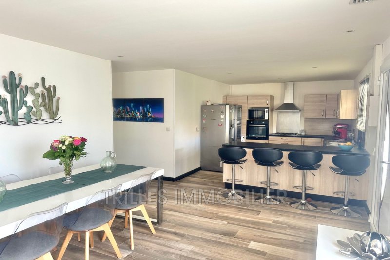 Exclusivité à Saint Laurent de la Salanque ? Nous l'avons nommé la Villa ''idéale''. Idéalement située dans un quartier résidentiel et proche de toutes commodités, nous avons le plaisir de vous présenter ''L'idéale'', une élégante villa 4 faces de plain-pied de 100 m², nichée dans un environnement paisible et recherché. L'idéale au charme indéniable vous propose : 3 chambres spacieuses, dont une parentale avec salle d'eau privative. Un vaste séjour avec cuisine ouverte haut de gamme signée Cuisinella, un garage fonctionnel avec atelier et mezzanine pour les amateurs de bricolage ou de rangement optimisé. À l'extérieur, laissez-vous séduire par : Un jardin arboré et intime, parfait pour vos moments de détente Une piscine 8m x 4m pour profiter pleinement des beaux jours avec espaces extérieurs pour manger et bronzer. Le tout sur un terrain de 503 m², avec possibilité de garer 2 voitures, un petit camping-car ou un bateau. Ce bien n'attend plus que vous. Venez le découvrir! CLASSE ENERGIE: C (144) CLASSE CLIMAT: A (4) Estimation des coûts annuels d'énergie entre 973¤ et 1317¤ (année d'estimation 2021) Réf mandat : 1454 ? Honoraires Charge vendeur. Les informations sur les risques auxquels ce bien est exposé sont disponibles sur le site Géorisques : www.georisques.gouv.fr Contact : Caroline Oliver - Agent Commerciale 06.20.60.19.49 ? Agence TRILLES IMMOBILIER ? 25 Avenue FOCH ? 66250 St Laurent de la Salanque- 04.68.50.97.43.