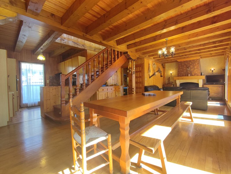 Chalet idéal en résidence principale ou secondaire, offrant une organisation intérieure bien pensée. Il comprend 4 chambres, dont une située au rez-de-chaussée avec salle d'eau attenante, une salle de bain à l'étage, 3 WC, ainsi qu'une mezzanine et de nombreux rangements.