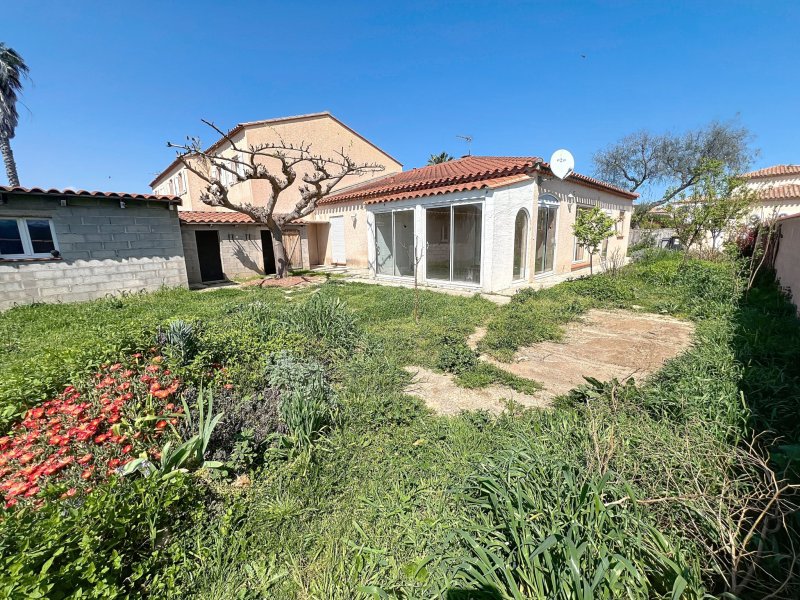 ST MARIE DE LA MER AU VILLAGE -AU CALME DANS UNE IMPASSE - VILLA 3 FACES DE PLAIN PIED DE CONSTRUCTION TRADITIONNELLE ENV 85 M2 HBTS SUR 542 M2 DE TERRAIN ARBORE -GARAGE AV MEZZANINE ET BUANDERIE - 3 CASOTS DONT UN DE 18 M2 AVEC L ELECTRICITE - PORTAIL MOTORISE ET PORTE DE GARAGE MOTORISEE ELLE SE DECOMPOSE COMME SUIT : ENTREE -SEJOUR SALON AV CHEMINEE INSERT CUISINE OUVERTE ENV 51 M2 -VERANDA 16 M2 DONNAT SUR JARDIN -2 CHAMBRES 13.45 ET 13.35 M2 -SALLE DEAU ENV 5.96 M2 -TOILETTE INDEPENDANT -GARAGE AVEC COIN BUANDERIE ET MEZZANINE MENUISERIES PVC-VOLET ROULANT - PROCHE TOUTES COMMODITES LES INFORMATIONS SUR LES RISQUES AUXQUELS CE BIEN EST EXPOSE SONT DISPONIBLES SUR LE SITE GEORISQUES : WWW.GEORISQUES.FR