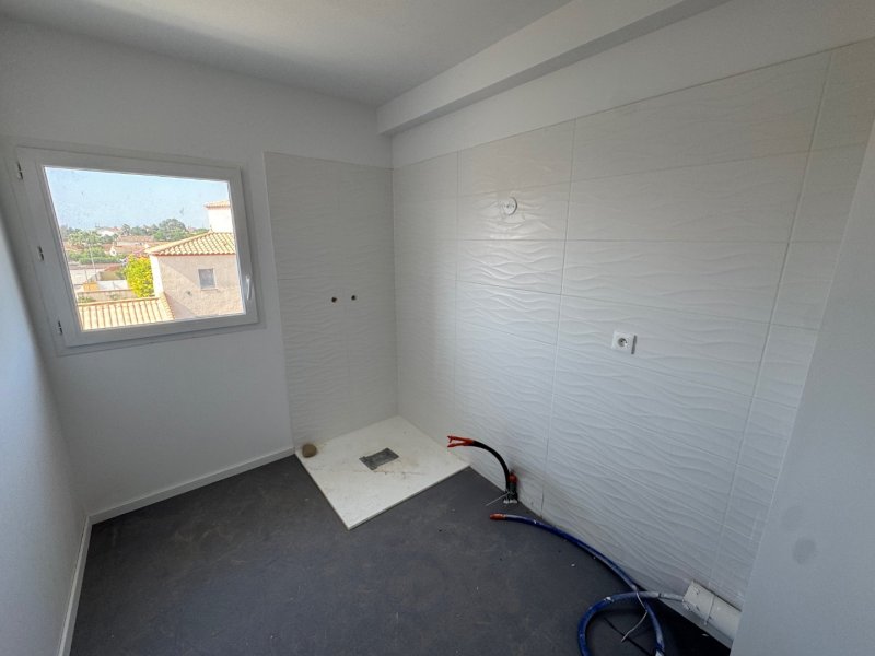 SAINTE MARIE DE LA MER, à proximité de la plage, du port et de tous les commerces, villas individuelles 3 faces de 78 m² H aux normes thermiques économes qui possèdent de large terrasse à la vue dégagée et un grand garage de 40 m² donnant sur le jardin. Les parcelles 3 faces peuvent atteindre 645 m². Séjour / SAM / cuisine avec accès sur la terrasse, 2 chambres avec placards aménagée, SDE avec douche italienne, 2 WC séparés. Frais de notaire réduits. Garantie Dommage ouvrage.