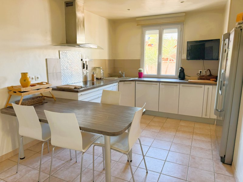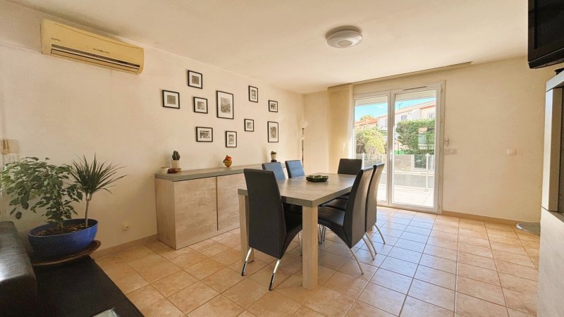 Votre agence TABARY Immobilier vous propose en exclusivité cette charmante villa T5 d'une superficie de 113 m2 nichée sur une parcelle arborée de 593 m2, idéalement située à Sainte-Marie-la-Mer, dans un environnement calme et résidentiel, à deux pas de la plage. Ce bien se compose d'une entrée spacieuse avec rangements, d'un WC séparé, d'une cuisine séparée et équipée, d'un séjour salle à manger lumineux ouvrant sur une terrasse conviviale avec vue sur une superbe piscine au chlore (7x4). Le rez-de-chaussée accueille également une suite parentale avec salle d'eau privative. A l'étage, l'espace nuit se compose de trois chambres confortables, d'une salle d'eau et d'un WC séparé. Un garage fermé avec mezzanine vient compléter ce bien. Une opportunité rare sur le secteur, à proximité des commodités et des axes principaux. À découvrir sans tarder. Contactez dès maintenant Alexandre TABARY au 06 24 98 31 49 ou par mail sur agence@tabaryimmobilier.com. Les informations concernant les risques auxquels ce bien est exposé sont disponibles sur le site : www.georisques.gouv.fr.