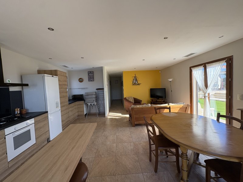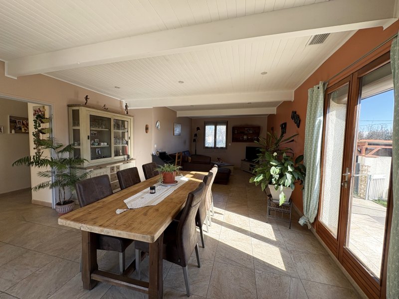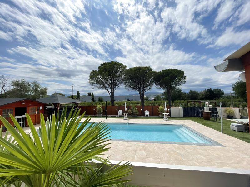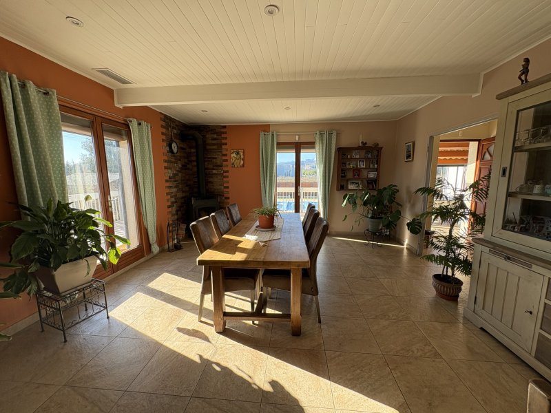 Rare sur le secteur. Située à Thuir, dans un environnement paisible avec vue dégagée sur la campagne, cette propriété unique se compose de deux villas indépendantes de plain-pied, de 122 m2 et 100 m2, implantées sur un superbe terrain arboré de 5274m2. La villa principale (122 m2), construite en 1980 et entièrement rénovée en 2019, offre un salon-séjour lumineux de 35 m2, une cuisine aménagée et équipée, cinq chambres, une salle d'eau et un WC indépendant. Une terrasse avec véranda ouvre sur l'espace piscine, pool house et barbecue. Profitez d'un grand jardin arboré, avec 200 grenadiers, de plusieurs terrasses, de l'arrosage automatique, d'un espace détente La seconde villa (2017) propose une pièce de vie de plus de 38 m2 avec cuisine ouverte, trois chambres, une salle d'eau et une buanderie. Elle bénéficie du label Gîtes de France, offrant un revenu locatif complémentaire. Prestations de qualité : climatisation gainable réversible, double vitrage, volets roulants électriques, alarme, portail électrique, forage, piscine chauffée 4x10 m avec nage à contre-courant, Et grand car-port. Un bien rare, alliant confort, sérénité et projet de vie. À découvrir sans tarder. « Les informations sur les risques auxquels ce bien est exposé sont disponibles sur le site Géorisques : www.georisques.gouv.fr »