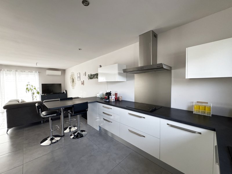 Thuir, ville dynamique à seulement dix minutes de Perpignan et de l'autoroute A9, située dans un environnement paisible dans un lotissement récent à deux pas des commerces et des commodités, cette élégante villa en R+1 de 81m2 habitables offre un cadre de vie idéal alliant confort, praticité et modernité. Vous serez séduits par la qualité de ses prestations, en rez de chaussée, une entrée avec rangements, un wc indépendant, une cuisine moderne entièrement équipée ouverte sur un lumineux salon-séjour attenant au jardin et à une belle terrasse exposé plein sud, parfaite pour profiter du soleil. A l'étage, deux spacieuses chambres dont une avec dressing, une salle de bains avec wc. Le garage est traversant, pratique pour le stockage et l'accès au jardin. Vous aurez un emplacement de stationnement privatif devant la villa, le terrain est agréable et facile d'entretien, le quartier est calme et recherché. Coup de coeur assuré pour cette villa aux prestations soignées! Une visite s'impose sans tarder! «Les informations sur les risques auxquels ce bien est exposé sont disponibles sur le site Géorisques : www.georisques.gouv.fr »