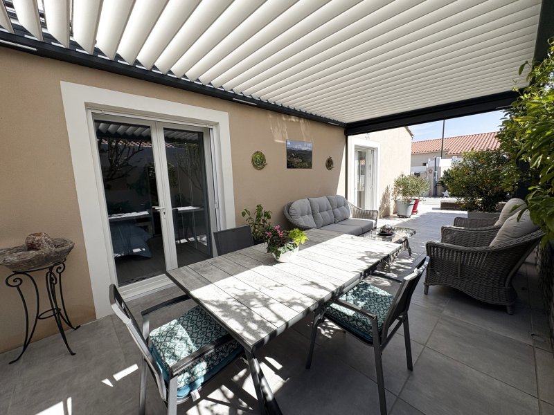 À seulement 15 minutes à pied du centre de Thuir, dans un environnement calme et proche de la nature, laissez-vous séduire par cette superbe villa de plain-pied construite en 2015, en état irréprochable. Villa de 106 m2 habitables de plain-pied sur une parcelle de 332 m2, cette maison en trois faces offre une belle pièce de vie lumineuse, trois chambres et des espaces parfaitement pensés pour un confort optimal. Ici, tout est soigné, aucun travaux à prévoir : vous n'avez plus qu'à poser vos valises. À l'extérieur, véritable havre de paix sans vis-à-vis, profitez d'un jardin aménagé, d'une piscine chauffée, d'une cuisine d'été conviviale et de ses espaces dédiés à la détente. Carport et pergola bioclimatique viennent parfaire l'ensemble. Prestations haut de gamme : panneaux solaires en autoconsommation, climatisation réversible, volets roulants électriques, moustiquaires, isolation des combles refaite, arrosage automatique. Un bien rare sur le secteur, sans aucun défaut, alliant confort, modernité et qualité de vie. Coup de coeur assuré À visiter sans tarder ! « Les informations sur les risques auxquels ce bien est exposé sont disponibles sur le site Géorisques : www.georisques.gouv.fr »