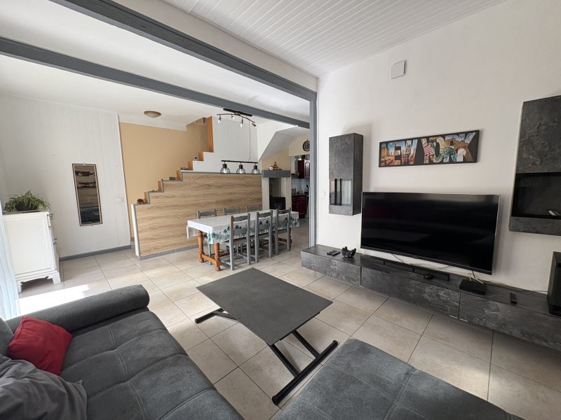 À vendre Maison de ville 102 m2 avec jardin et annexes au coeur de Thuir Idéalement située en plein centre-ville de Thuir, à deux pas des commerces et services, cette maison R+1 de 102 m2 habitables allie confort moderne et praticité. Au rez-de-chaussée, une entrée fonctionnelle dessert un WC indépendant, une salle de bain, ainsi qu'une cuisine ouverte sur la salle à manger et le salon. Cet espace convivial s'ouvre directement sur un agréable jardin de 50 m2, parfait pour vos moments de détente. À l'étage, l'espace nuit se compose de trois chambres lumineuses et d'une suite parentale, offrant à chacun son intimité. La maison dispose également de 24 m2 d'annexes comprenant un cellier de stockage et un atelier extérieur avec forage, idéals pour vos projets et rangements. Côté confort : poêle à granulés, climatisation à chaque niveau, double vitrage et volets roulants électriques garantissent des performances énergétiques optimales. Un bien rare au coeur de Thuir, offrant espace, confort et un extérieur agréable ! Ne tardez pas, contactez-nous dès aujourd'hui pour organiser une visite. ' Les informations sur les risques auxquels ce bien est exposé sont disponibles sur le site Géorisques : www.georisques.gouv.fr '