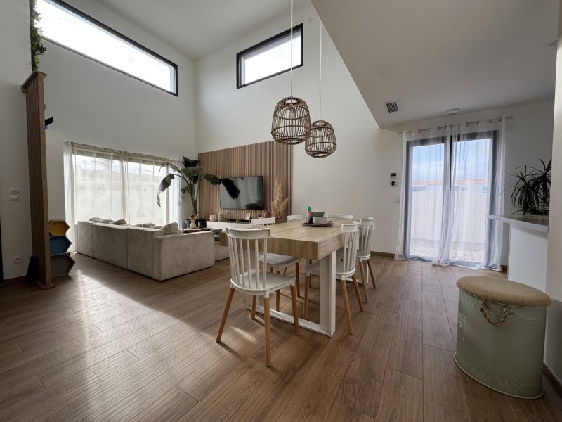 Située à Thuir ville dynamique à seulement dix minutes de Perpignan, cette villa cinq pièces moderne et lumineuse de 132m2 habitables en trois faces offre un cadre de vie agréable à deux pas des commerces et de la nature. La villa vous séduira par ses volumes, ses belles prestations, son agencement fonctionnel et ses espaces extérieurs parfaitement aménagés. En rez de chaussée, une cuisine moderne entièrement équipée attenante à un cellier avec accès au jardin, salon/ séjour cathédrale avec baies panoramiques en alus donnant sur la terrasse et l'espace piscine exposée sud-ouest. Côté nuit, une suite parentale avec salle d'eau et dressing, un wc indépendant, une grande buanderie, un garage avec porte sectionnelle motorisée. A l'étage, un dégagement, trois spacieuses chambres, une salle de bains, un wc indépendant. Vous apprécierez les volumes dans l'ensemble, l'architecture de la villa, également les deux places de stationnement. L'environnement est calme et résidentiel, la villa offre des prestations modernes et de qualité! Véritable coup de coeur! Contactez-nous pour organiser une visite! « Les informations sur les risques auxquels ce bien est exposé sont disponibles sur le site Géorisques : www.georisques.gouv.fr »