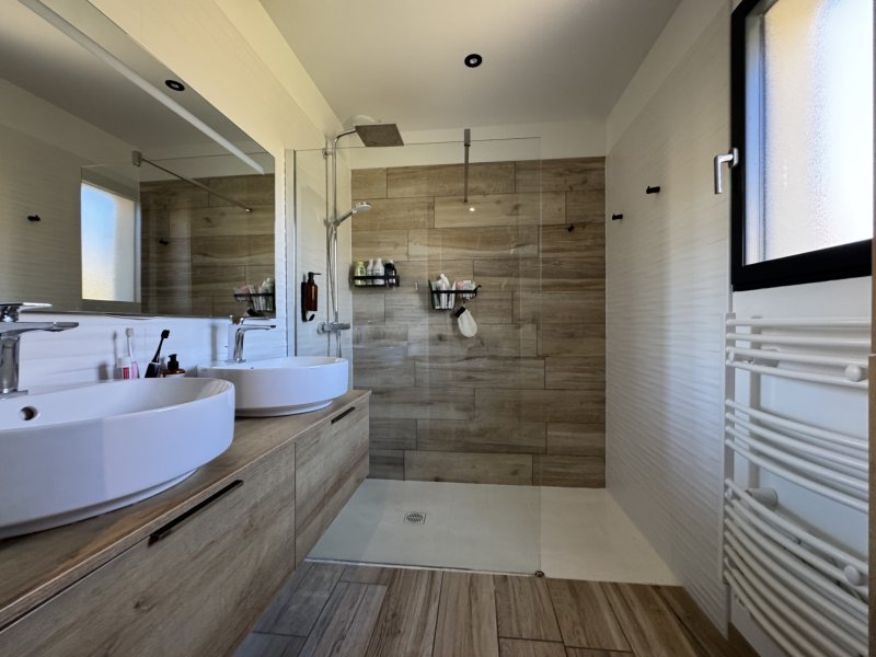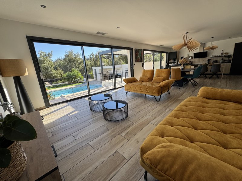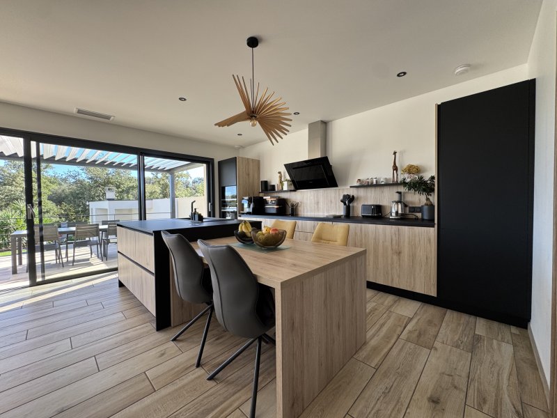 Nichée dans un environnement privilégié, à Sainte-Colombe de la Commanderie, à seulement quelques minutes de Thuir, charmante ville dynamique avec tous les commerces, écoles, infrastructures et commodités, découvrez cette magnifique villa contemporaine offrant une qualité de vie exceptionelle. Edifiée sur une parcelle paysagée de 825m2, cette propriété d'exception développe 155m2 habitables, avec des prestations haut de gamme, des espaces lumineux et une vue imprenable sur la nature et les montagnes. En rez de chaussée, entrée avec rangements, dégagement, suite parentale spacieuse avec salle d'eau et dressing, chambre supplémentaire, wc indépendant, grand garage et buanderie, idéal pour l'aspect pratique. Vous apprécierez les volumes de la pièce de vie, 60 m2 baigné de lumière comprenant salon, salle à manger et cuisine moderne entièrement équipée avec cellier attenant. Vous aurez un accès direct à une grande terrasse équipée d'une pergola bioclimatique, offrant un espace idéal pour recevoir ou se détendre en toute saison. A l'étage, un dégagement desservant deux belles chambres, une salle de bains et un wc indépendant. Coté jardin, belle terrasse aménagée avec salon de jardin, espace pool avec piscine au sel, cuisine d'été idéal pour les moments conviviaux, terrain de pétanque et aire de jeux pour les enfants. Equipée de panneaux photovoltaiques permettant une autoconsommation et une revente d'électricité offrant une véritable autonomie énergétique et une réduction des coûts, également un système de récupération d'eau intégré dans le vide sanitaire idéal pour la piscine, l'arrosage du jardin et les besoins extérieurs. Cette villa vous offre une vue dégagée sur la nature environnante et les montagnes, vous appécierez la qualité de ses prestations! Véritable coup de coeur! Une opportunité rare sur le secteur! Contactez-nous dès aujourd'hui pour organiser une visite et laissez vous séduire par le charme unique de cette villa d'exception! « Les informations sur les risques auxquels ce bien est exposé sont disponibles sur le site Géorisques : www.georisques.gouv.fr »