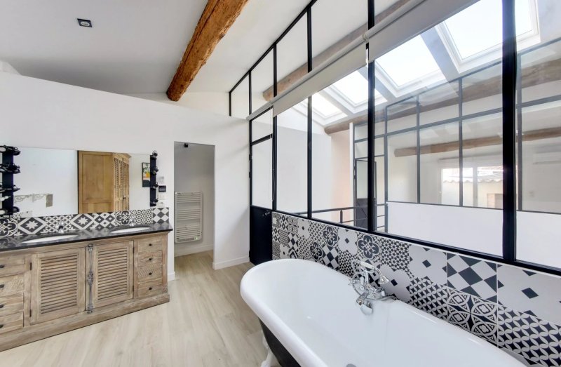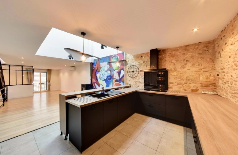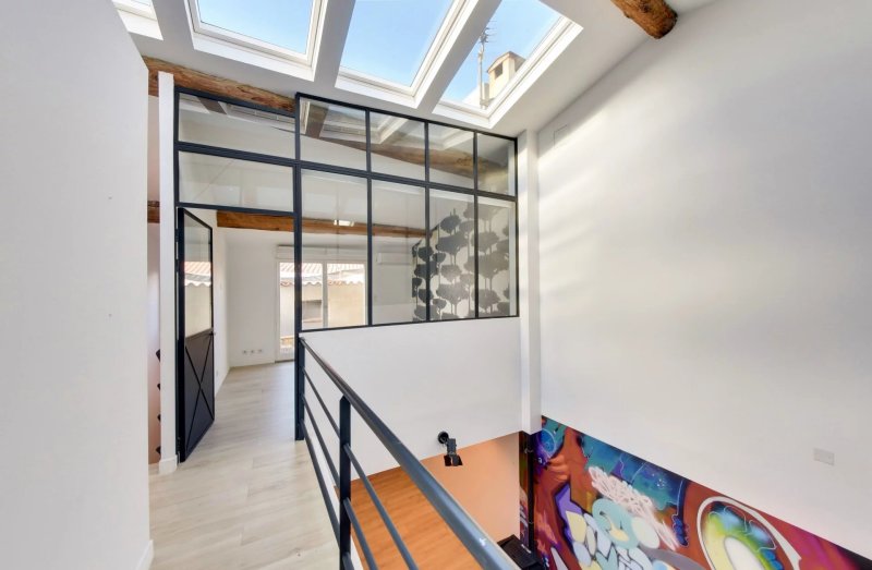 Mêlant charme authentique, décoration soignée et fonctionnalité, cette maison de village a été rénovée avec goût et réflexion. En rez-de-chaussée, profitant d'une possibilité d'entrée indépendante, se dégage un appartement avec un salon, une grande chambre avec sa salle d'eau et WC (douche italienne), ainsi qu'une chambre/bureau. L'ensemble à louer et/ou utiliser à des fins personnelles. A l'étage, un second espace de vie autonome prédominant est composé d'un salon spacieux, d'une cuisine contemporaine aménagée équipée d'un coin nuit et d'un WC. Une passerelle industrielle, sublimée par de belles verrières et des velux grandioses permettent l'accès à la salle de bains-wc et à la chambre, pour un ensemble très lumineux. Une terrasse de 17 m², sortie nécessaire, complète ce bien de style. La rénovation contemporaine parfaite.