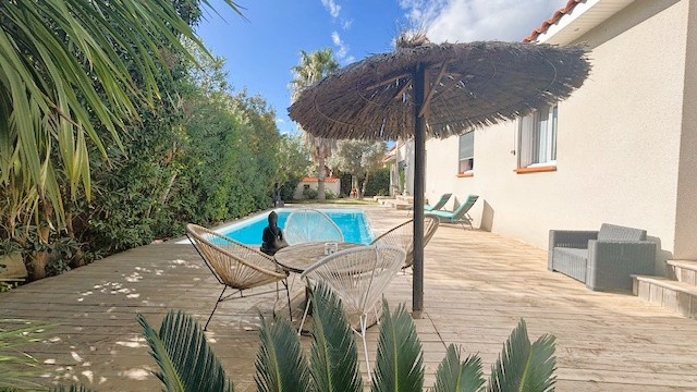 Votre agence TABARY Immobilier vous propose de venir découvrir cette superbe villa de plain-pied, d'une superficie de 149 m2 nichée sur une parcelle joliment arborée de 695 m2, idéalement située sur la commune de Torreilles. Dès l'entrée, vous serez séduit par son espace de vie baigné de lumière et aux volumes généreux composé d'un hall d'entrée, d'un toilette invité, d'un séjour cuisine ouverte moderne et entièrement équipée bénéficiant d'une belle hauteur sous plafond, d'une buanderie, d'un salon donnant sur une agréable terrasse avec piscine. La partie nuit se compose d'un dégagement qui dessert trois chambres avec placard, une salle d'eau avec toilette et une spacieuse suite parentale offrant un accès direct et privilégié à la piscine et sa terrasse. Une véritable cuisine d'été, un abri de jardin et un garage viennent compléter ce bien d'exception. Édifiée avec des matériaux de qualités, cette villa est un véritable coup de coeur. Ne laissez pas passer cette opportunité, et contactez dès maintenant Alexandre TABARY au 06.24.98.31.49 ou par mail sur agence@tabaryimmobilier.com pour organiser une visite. Les informations concernant les risques auxquels ce bien est exposé sont disponibles sur le site : www.georisques.gouv.fr.
