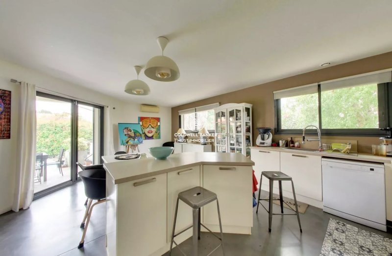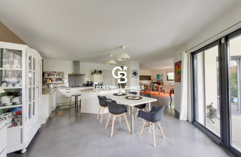 Les prestations haut de gamme comprennent du béton ciré, des baies à galandage et une climatisation réversible. Cette villa représente une opportunité rare sur le secteur, alliant confort et esthétique.