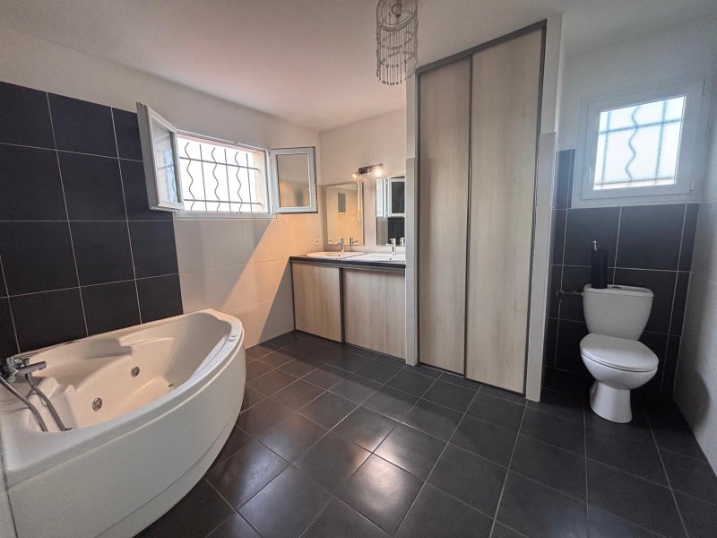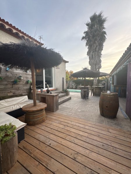 VILLELONGUE-DE-LA-SALANQUE: L'Agence LAVILLE IMMO vous présente cette jolie villa comptemporaine de 5 pièces et de 144m2 idéalement située dans un quartier très calme, à seulement quelques minutes des plages de Sainte-Marie et Canet-en-Roussillon. Elle offre un cadre de vie privilégié, proche des commerces, des écoles et de toutes les commodités. Au rez-de-chaussée, vous découvrirez un salon/séjour lumineux grâce à ses grandes baies vitrées donnant directement sur l'extérieur. La cuisine, récemment rénovée et entièrement équipée, bénéficie d'un îlot central fonctionnel, parfait pour les repas en famille. Une buanderie vient compléter l'espace de vie. Le rez-de-chaussée dispose également d'une suite parentale avec douche ainsi qu'un WC individuel. À l'étage, l'espace nuit se compose de trois chambres avec placards intégrés, dont une chambre dotée d'un dressing séparé. S'ajoute une salle de bains moderne, équipée d'un WC, d'un double vasque et d'une fenêtre. L'extérieur a été pensé pour profiter pleinement du climat méditerranéen. Vous y trouverez une cuisine d'été, plusieurs cabanons de rangement, un WC extérieur, une terrasse conviviale et une piscine au chlore idéale pour les beaux jours. Nombreuses possibilités de stationnement à l'intérieur de la parcelle. Maison fonctionnelle, lumineuse et très bien située, parfaite pour une famille cherchant confort et tranquillité tout en restant proche du littoral. Honoraires à la charge du vendeur. Informations sur les risques disponibles sur : www.georisques.gouv.fr. Cette maison vous plaît ? Contactez-nous dès maintenant pour une visite ! DPE en cours !