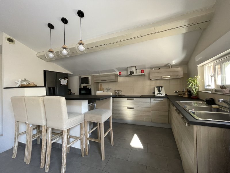 Située au coeur du charmant village de Villemolaque, cette spacieuse maison de village d'une surface habitable de 216m2 offre l'opportunité unique de concilier habitation principale ET rendement locatif. Cette maison est en effet composée de deux appartements, situés au premier étage, avec des accès indépendants : Le premier appartement est de type T3 d'une superficie de 60m2. Il est composé d'un salon-séjour, d'une cuisine ouverte, de 2 chambres et d'une salle d'Eau. Il est équipé de double vitrage, de volets électriques et d'un Chauffage électrique. Il est complété par un garage indépendant en rez-de-chaussée. Le 2ème appartement de type T5 se compose d'une cuisine ouverte sur le salon, d'un salon séjour donnant sur une terrasse de 40m2 équipée d'un jacuzzi, de 4 chambres et 2 salles de bains. Cet appartement de 160 m2 est équipé de double vitrage, de volets électriques et de la climatisation en gainable. Il bénéficie en rez-de-chaussée d'une dépendance avec cuisine et chambre et d'un garage d'une superficie de 135m2. Idéal investisseurs ou résidence principale avec complément de revenus locatifs, venez découvrir ce bel ensemble immobilier en visite virtuelle sur notre site internet, et pour plus d'informations n'hésitez pas à nous contacter dès maintenant à l'agence TRIBBU.