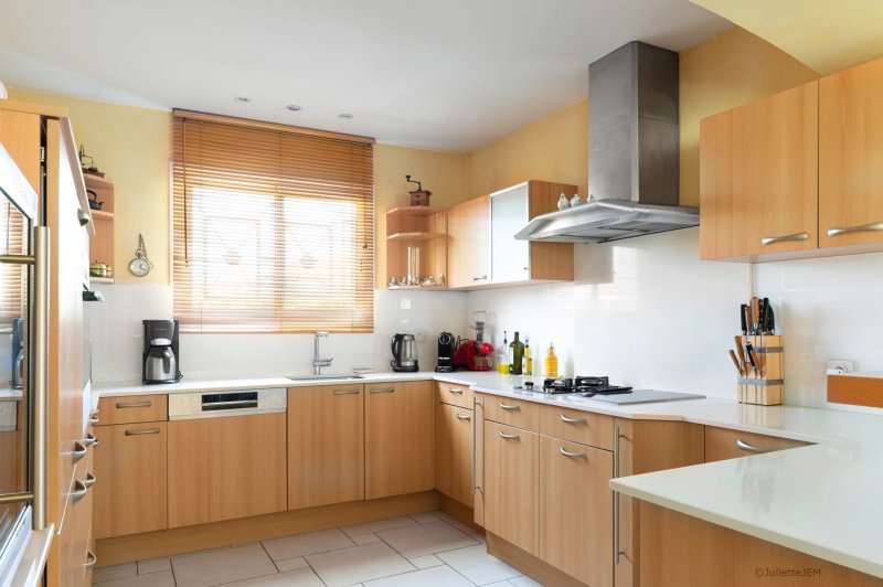 Une cuisine ouverte entièrement équipée, moderne et fonctionnelle