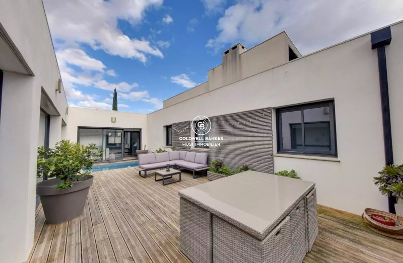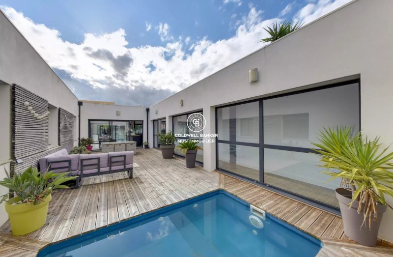 la maison s'organise harmonieusement autour d'un élégant patio central de 48 m2, agrémenté d'une petite piscine (2x3), véritable cœur de la propriété.