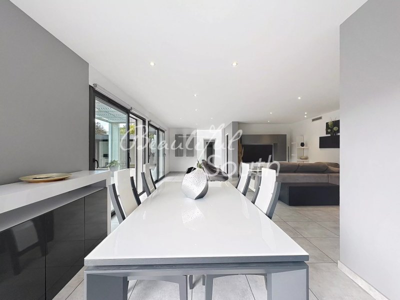 Nichée au cœur de la commune très recherchée de Villeneuve-de-la-Raho, dans un environnement résidentiel d’une grande quiétude, cette somptueuse villa contemporaine de 170 m² déploie des prestations haut de gamme sur une parcelle paysagée de 583 m².