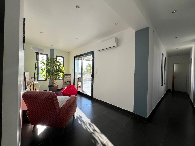Villa de standing pleine vue 180° sur les Albères - Dans la commune prisée de Villeneuve-de-la-raho, villa de standing 3faces, construction de 2010, avec une terrasse sans vis-à-vis de 60m2 offrant une vue dégagée à 180°, plein sud, sur le massif des Albères; jardinet face Est et petite terrasse arrière.